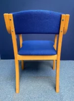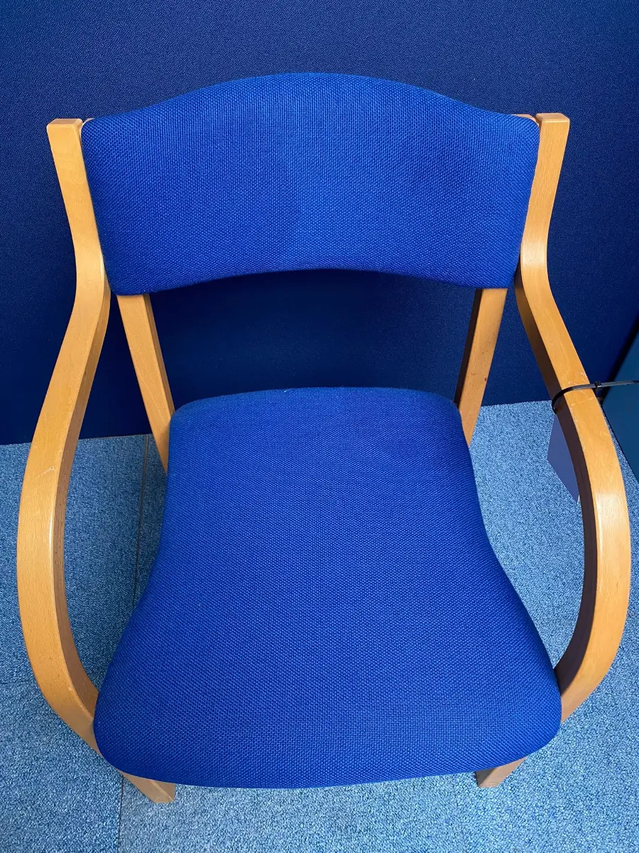 Blue Meeting Chair with Wooden Arms and Legs